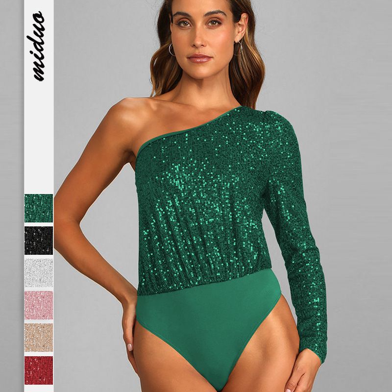 Sequin jumpsuit Women's jumpsuit Nightclub sparkling tight jumpsuit single shoulder design