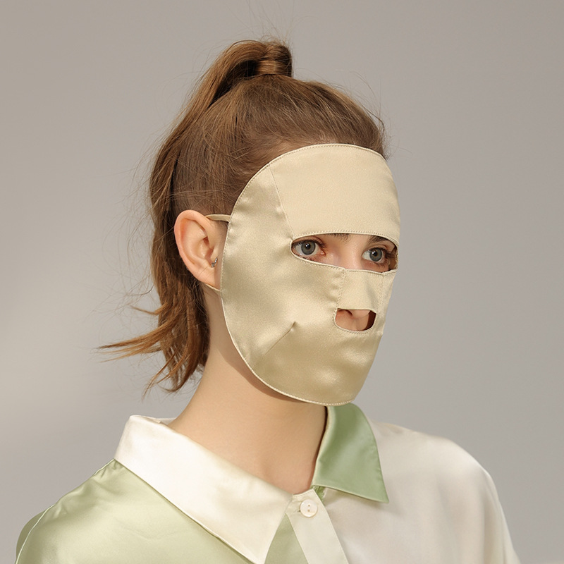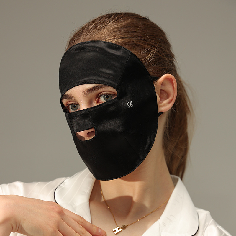 Outdoor cycling face mask, full face sun protection, sun shading, UV protection, women's mulberry silk mask, breathable, moisturizing, and nourishing for sleep