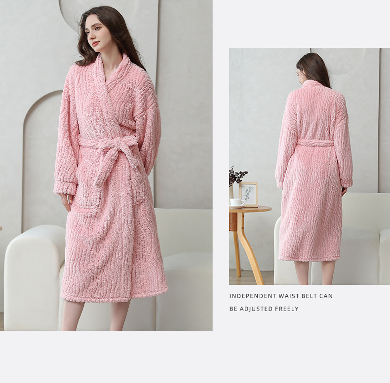 Γυναικείο χειμωνιάτικο νέο άνετο νυχτικό με μακριά μανίκια από βαμβάκι και βελούδο, χοντρό, ζεστό, μακρύ μπουρνούζι, ρούχα για το σπίτι