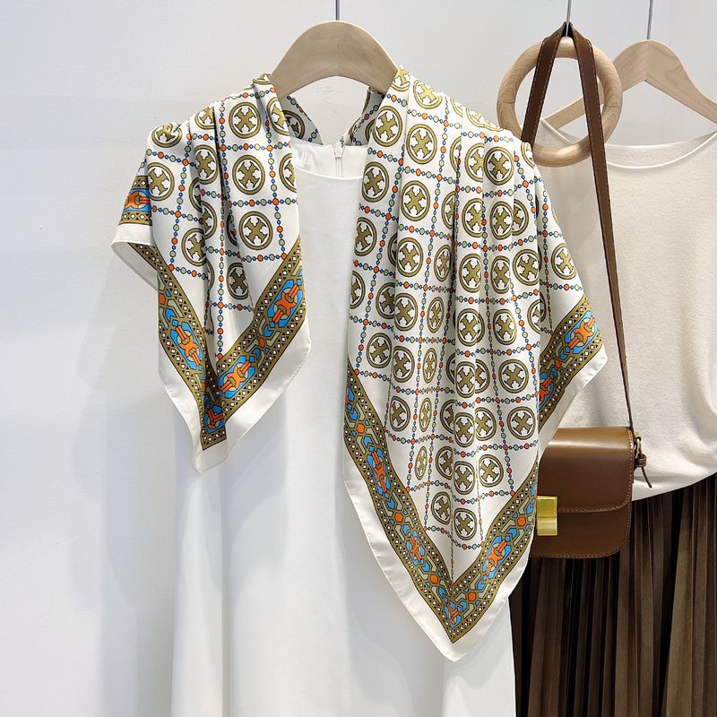 Spring and Autumn Korean Fashion Decoration Square Scarf for Women, Versatile for Work, Commuting, Travel, Sunscreen, Big Shawl, Silk Scarf