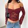 Φθινοπωρινά διασυνοριακά Ευρωπαϊκά και Αμερικάνικα γυναικεία ρούχα Νέα μόδα Σέξι καυτό κορίτσι Λεπτή δαντέλα Μακρυμάνικο κοντό μπλουζάκι μιας γραμμής