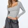 Σέξι γυναικείο μπλουζάκι πουλόβερ μπλουζάκι Σέξι μακρυμάνικο μπλουζάκι με λαιμόκοψη με καλσόν