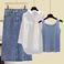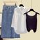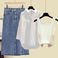 Γυναικεία Ρούχα Λευκά Μεγάλα Μεγέθη για Κορίτσια με Χοντρό Φόρεμα Καλοκαιρινά Κοστούμια Ζακέτα Μικρές Τιράντες Φούστα Τζιν Τριπλό Κοστούμι