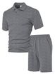 Men's Summer New Jacquard Fabric Men's Casual Sports Thin Edition Polo Shirt Short Sleeve Set