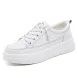Γνήσιο Δερμάτινο Γυναικείο Κορεατικό Μικρό Λευκό Άνοιξη-Καλοκαίρι Σφουγγάρι Κέικ με Χοντρές Σόλες και Δαντέλα Αθλητικά Παπούτσια