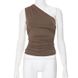 Γυναικεία Ρούχα Νέο Μονόχρωμο Γυναικείο μπλουζάκι με πλισέ πλισέ γιλέκο με έναν ώμο