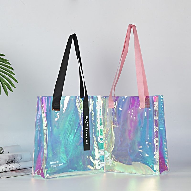 Colorful PVC laser shooter bag, jelly bag, transparent plastic bag, gift bag, printable bag