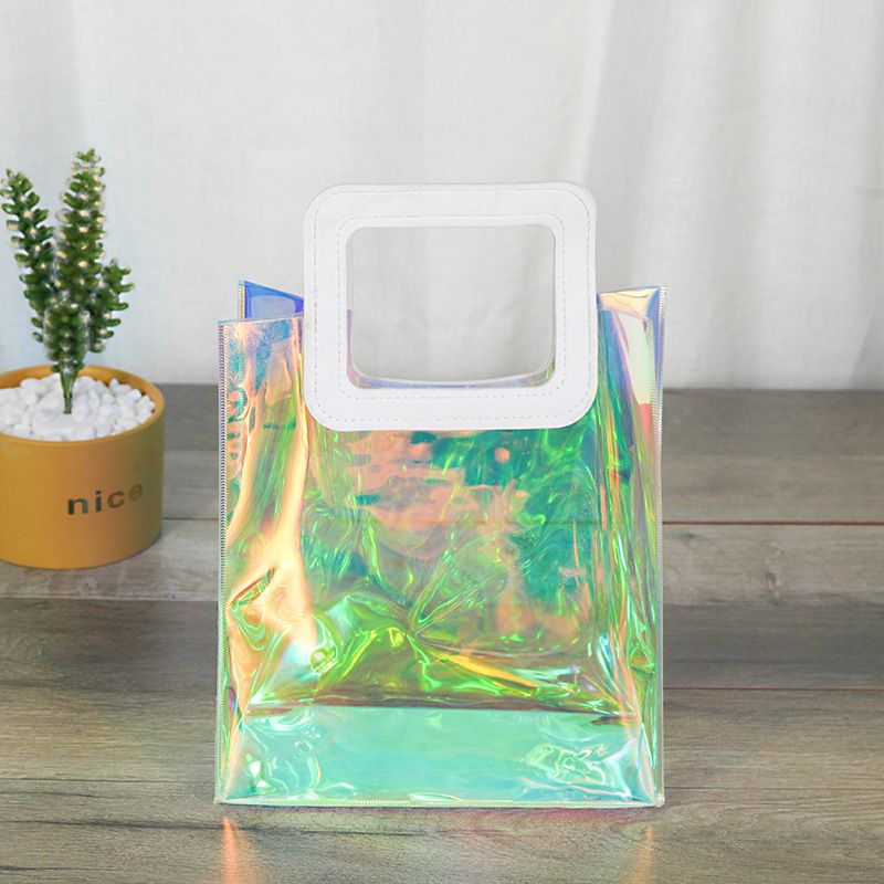 PVC transparent laser shooter tote bag, shopping gift plastic bag, souvenir advertising bag, printable