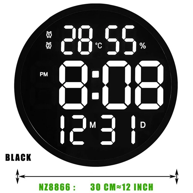 Μεγάλο ψηφιακό ρολόι τοίχου LED 10 ή 12 ιντσών με ξυπνητήρι και ημερολόγιο, έξυπνη φωτεινότητα, υγρασία, θερμόμετρο θερμοκρασίας. Μοντέρνα διακόσμηση σπιτιού