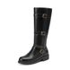 Round Toe Flat Heel High For Women With Belt Buckle, Plus Size Riding Boots