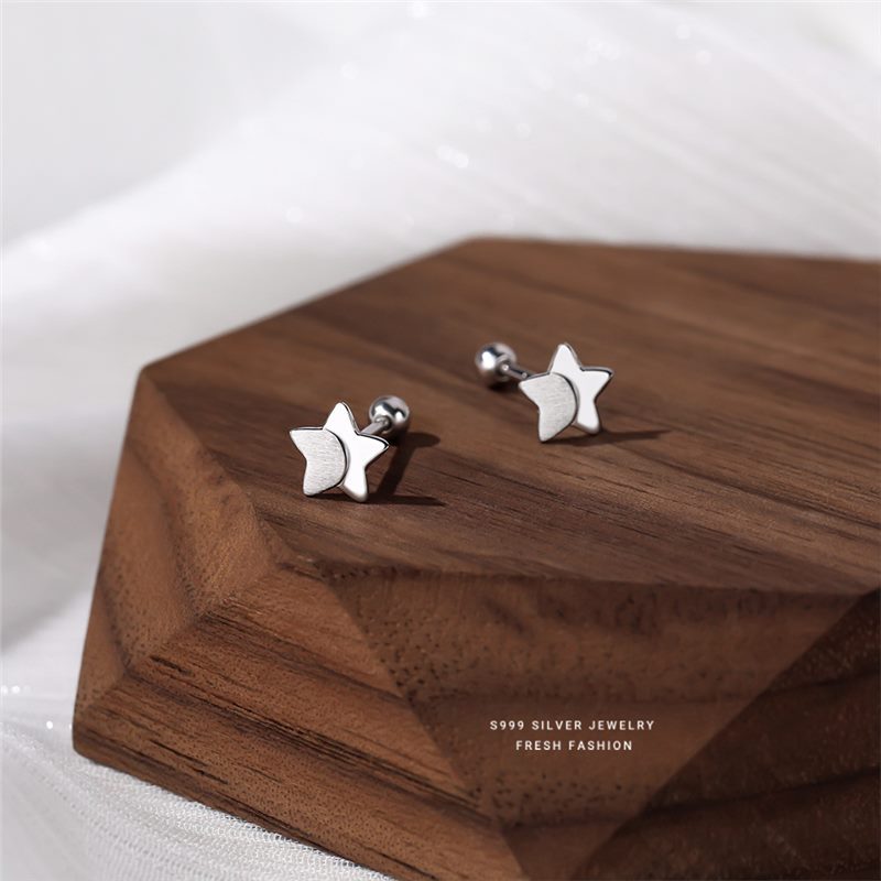 S999 pure silver star earrings women's versatile minimalist style 2023 winter new product pentagram foot silver earrings