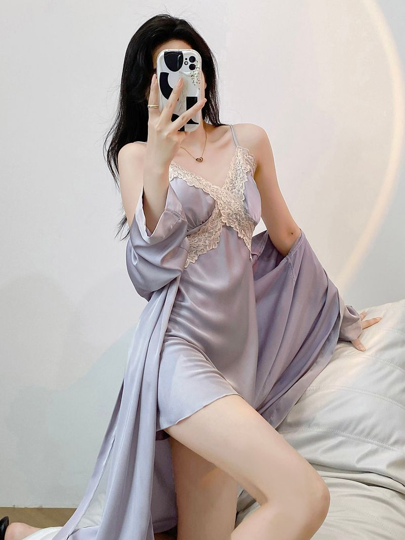 Seductive Summer Elegance! 2025 Ice Silk Sheer Nightgown With Breast Pads - Thin Strappy Luxury Home Wear