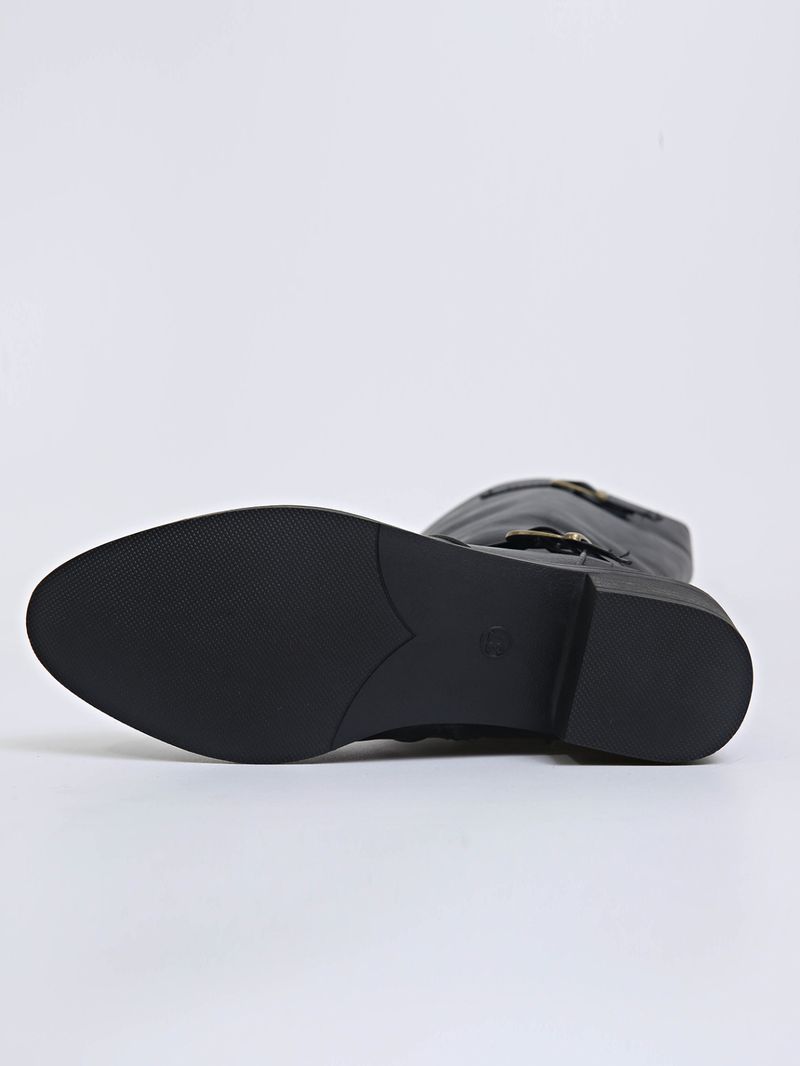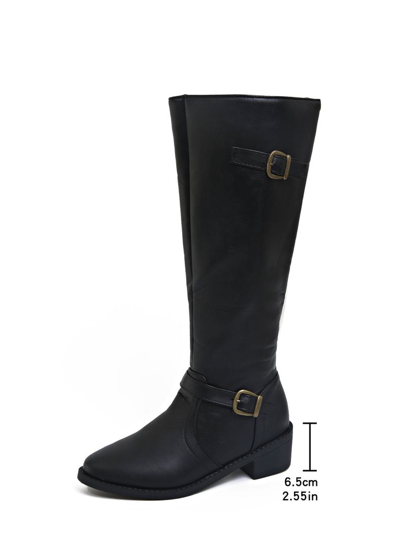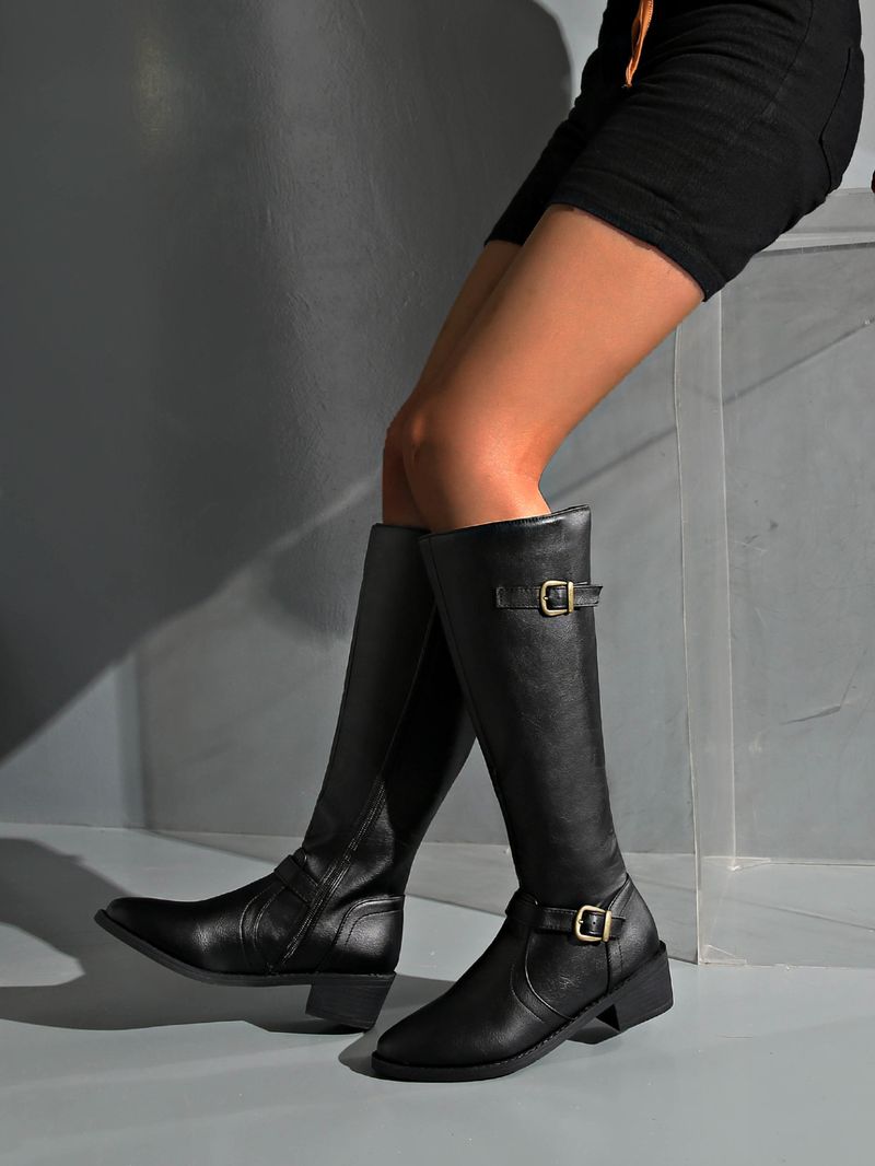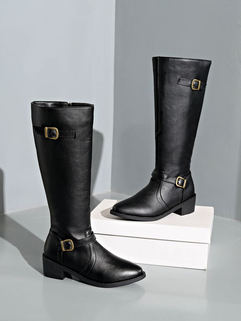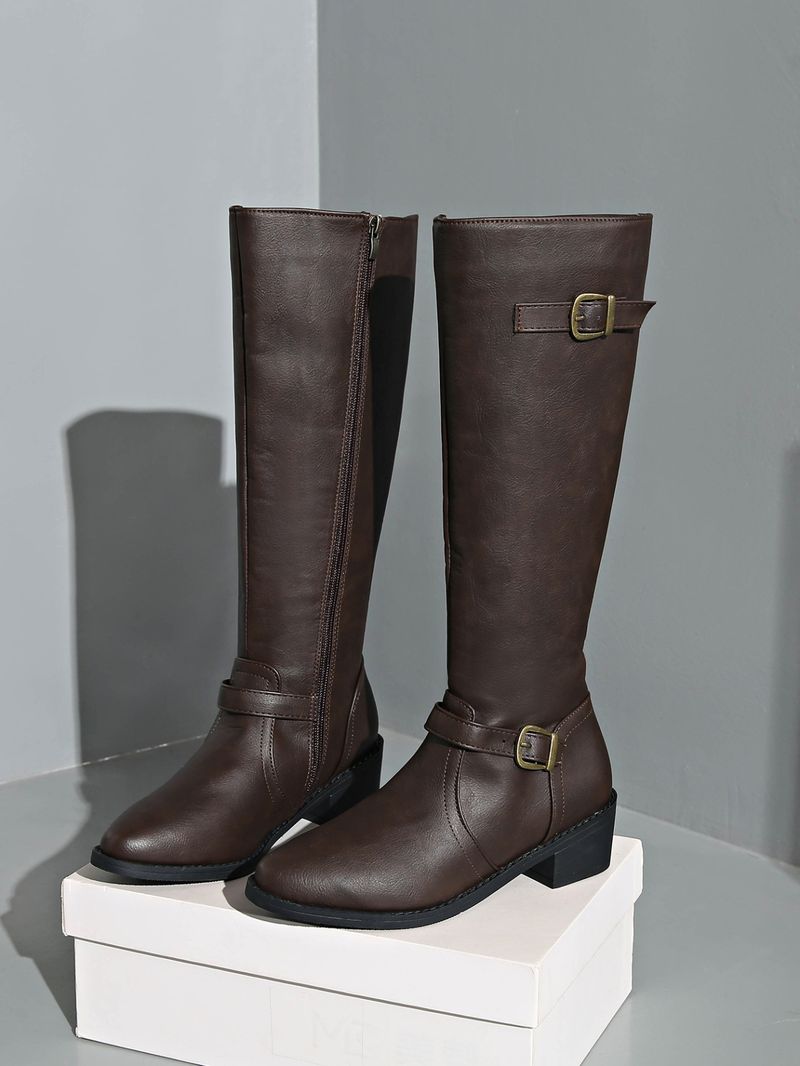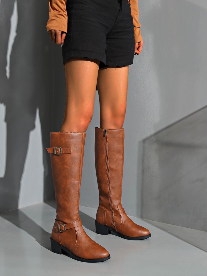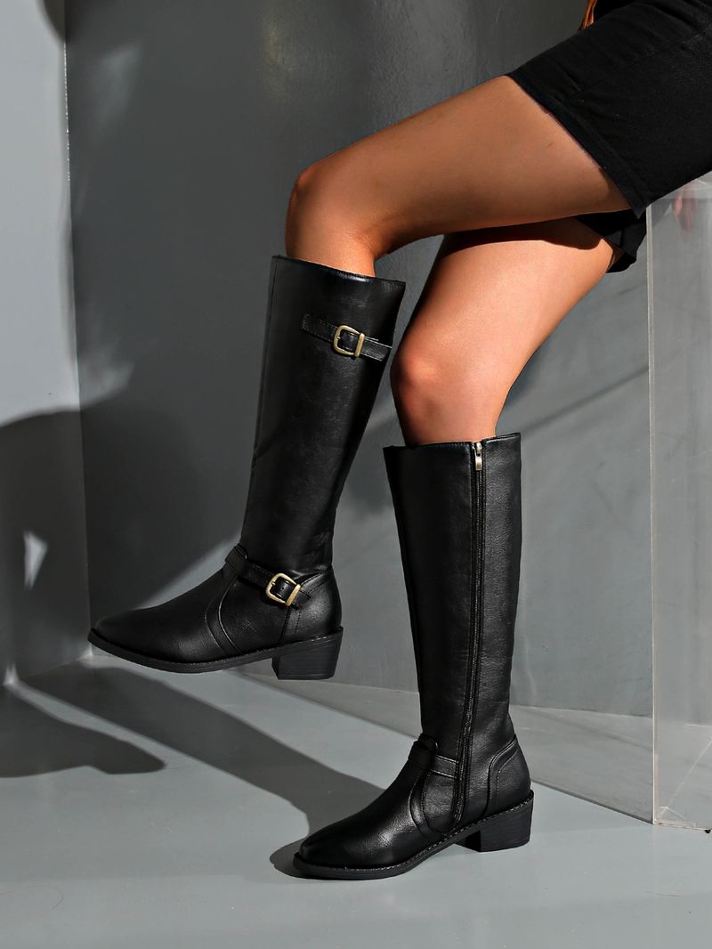 Shoes Leather Boots Side Zipper High Boots High Heel Belt Buckle Knight Boots