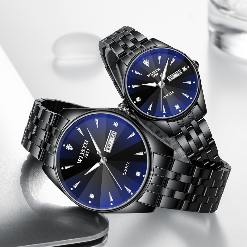 Ανδρικό straight unisex casual ρολόι με διπλό ημερολόγιο και νυχτερινή λάμψη, χαλαζία και μπρασελέ, δώρο για ζευγάρια, χωρίς μηχανικό ρολόι