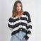 Trendy 3D Striped V-Neck Oversized Knit Cardigan – Long Sleeve Open Front Sweater For Women