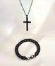 Trendy Fashion Cuban Bracelet Cross Light Luxury Versatile Hand Accessories Two-Piece Set Jewelry For Men