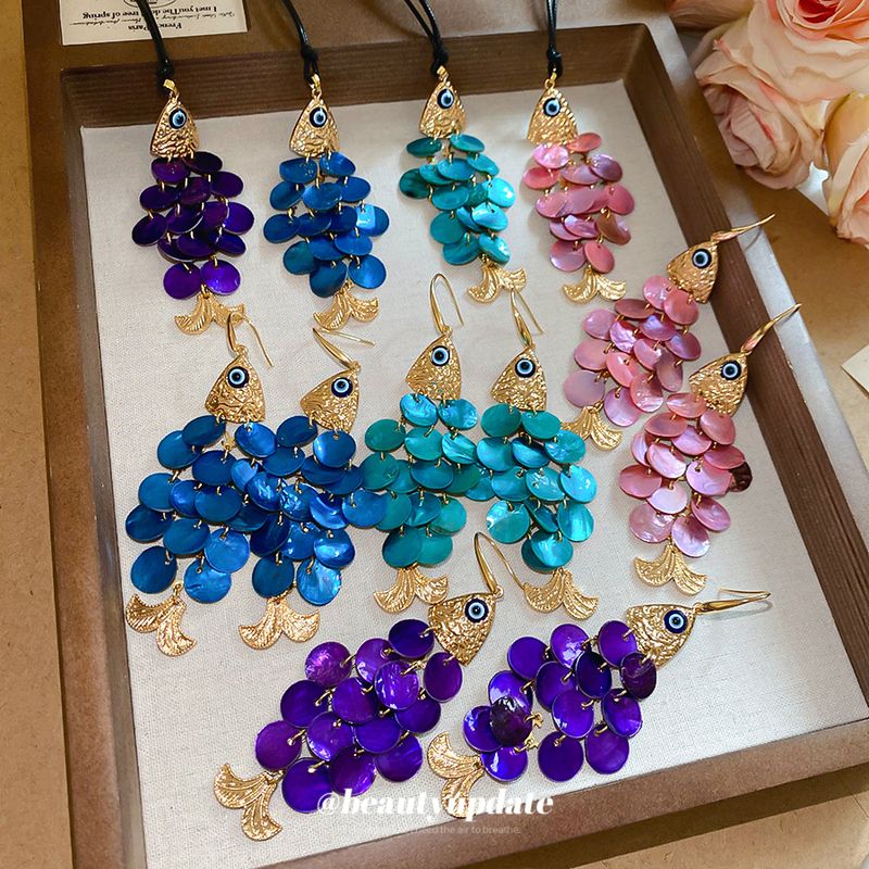 Triangle Round Shell Tassel Ear Hook Necklace Set Beach Vacation Style Collarbone Chain Niche Design Sense Jewelry