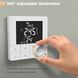 [Simple Manually Mode Change Operation ]---Touch button to change mode between auto and manual.Under auto mode press up or down key to control temperature manually and thermostat back to auto mode in next programmed time period.