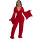 Γυναικεία ρούχα νέο προϊόν μονόχρωμο σέξι βαθύ V λουράκι πλισέ φαρδιά μανίκια μακρύ παντελόνι γυναικεία φόρμα