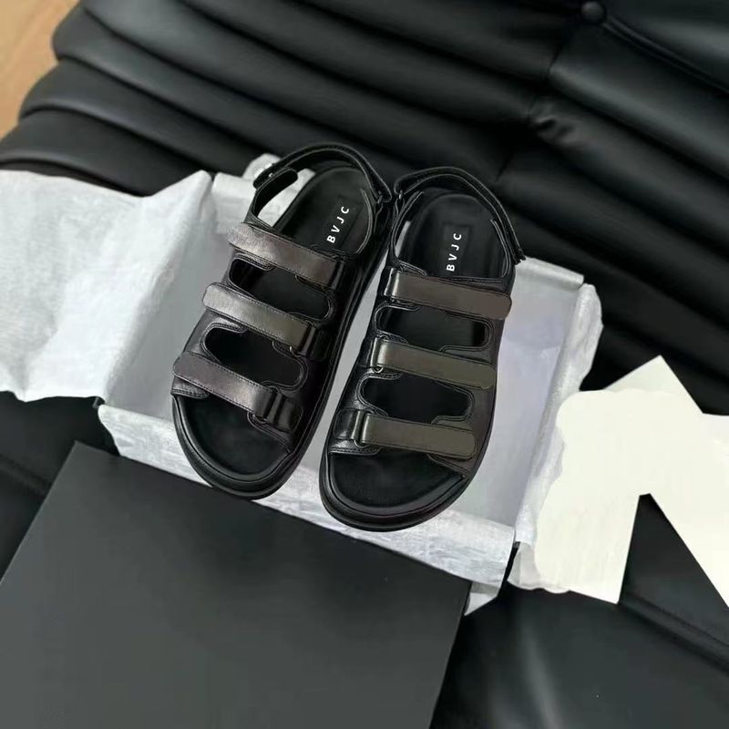 Chanel Style Rhinestone Velcro Sandals for Women 2025 Summer New Four-Strap Round Toe Open Toe Thick Sole Casual Slippers