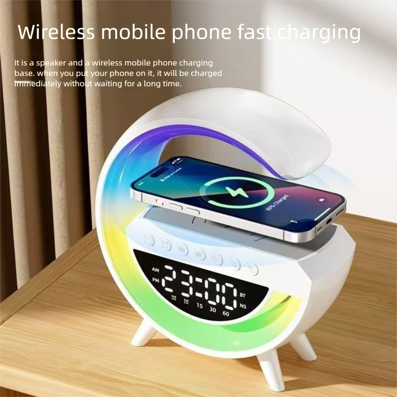 Wireless Charging Bluetooth Speaker USB Card Slot Lighting Atmosphere Light Alarm Clock Multifunctional Stereo Sound