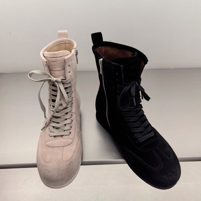 Women Boxing Boots XJ Women's Shoes 25 Autumn Winter Fashion Elastic Soft Cowhide Leather Round Toe Lace-Up Side Zipper Flat Boxing Ankle