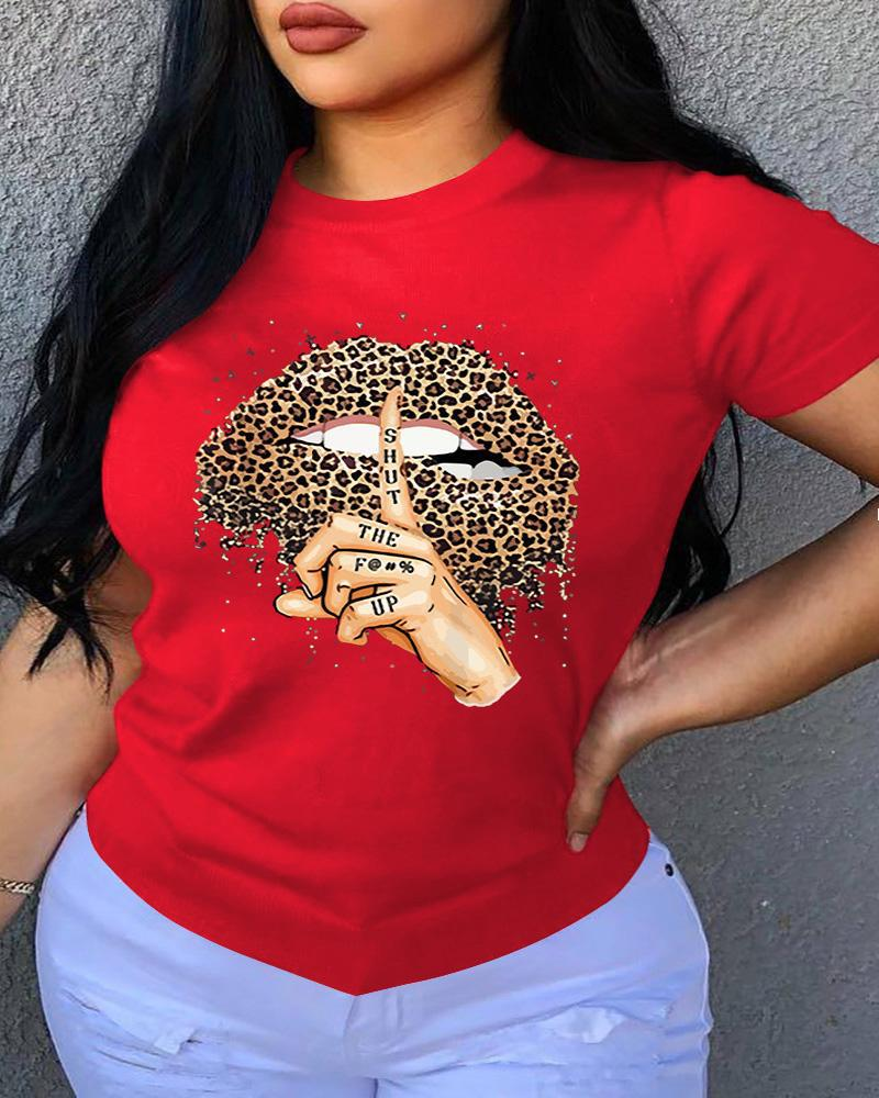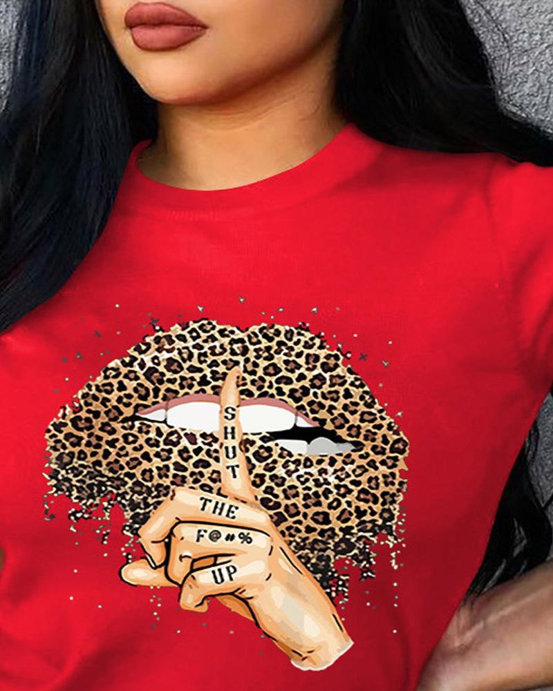 Γυναικείο μπλουζάκι με στάμπα κινουμένων σχεδίων μεγάλου μεγέθους με στρογγυλή λαιμόκοψη φαρδύ κοντομάνικο μπλουζάκι