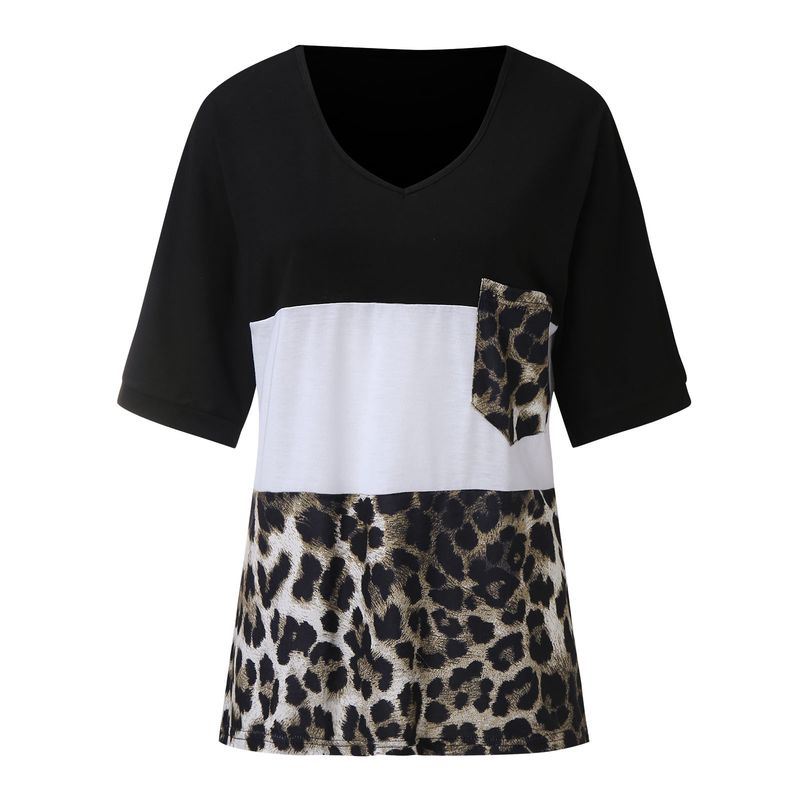 Γυναικεία ρούχα Άνοιξη και Καλοκαίρι Νέα Μόδα Leopard Small Pocket Print Κοντομάνικο
