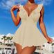 Women's One-Piece Bikini Swimsuit - Solid Color With Ruffled Back (High-Cut Leg Smoothing Fabric Adjustable Straps Beach & Pool)
