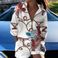 Women's Printed Zipper Shirt Shorts Suit
