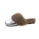 Women's Shoes Large Size Casual Flat Bottom Fur Slippers Autumn And Winter New Style Baotou Bright Leather Warm Fur Slippers