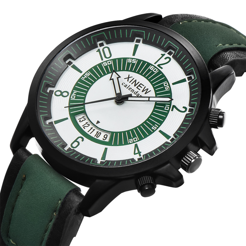 XINEW Brand Watches Men Leather Date Quartz Wristwatches