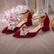 Xiuhe Γάμος Άνοιξη και Φθινόπωρο Νέα Χαμηλά Κορυφή Φιόγκος Νερό Διαμάντι Παράνυμφος Μυτερό Κόκκινο Ψηλοτάκουνα Παπούτσια για